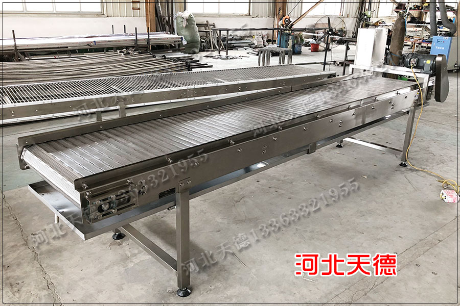 6.鏈板輸送機的輸送帶出現蛇形運行、跳鏈、卡滯或噪聲爆冷加大等應立即停止鏈板輸送機的運作,要關閉電源。反省并排除故障后在重啟鏈板輸送機并注目著眼故障是不是全盤接觸。 鏈板輸送機 藥片包裝機鏈板輸送機是役使滾子輸送鏈條抑或板鏈帶來鏈板傳動。是因為承載力大。輸送的相距長,被各同行業廣泛使用。
