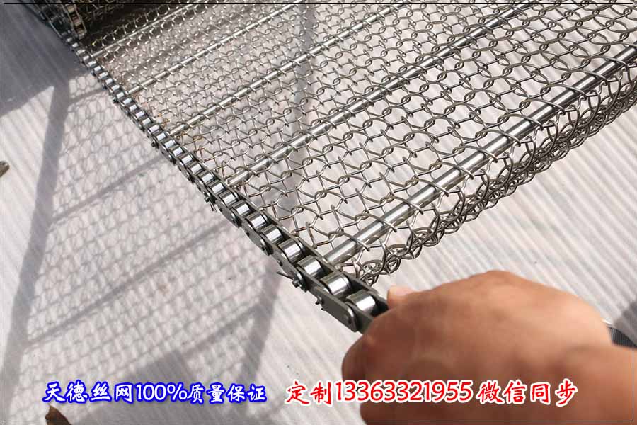 天德溫馨提示: 不銹鋼輸送帶屬于非標準件,我們將根據你提供的規(guī)格長寬,材質,不銹鋼絲線徑,編制結構尺寸,支軸直徑,支軸間距,鏈條型號等數據制作。