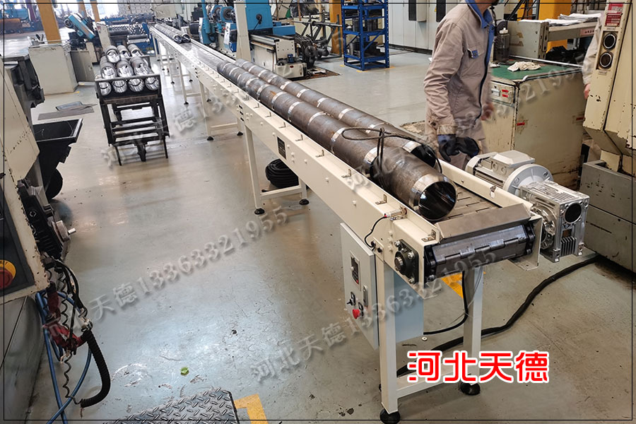 2、可在上層膠帶下膠面隔一段距離粘接上膠帶塊,以增加上層膠帶與物料間的摩擦。該裝置用于鏈板線局部坡度較大時的場合。