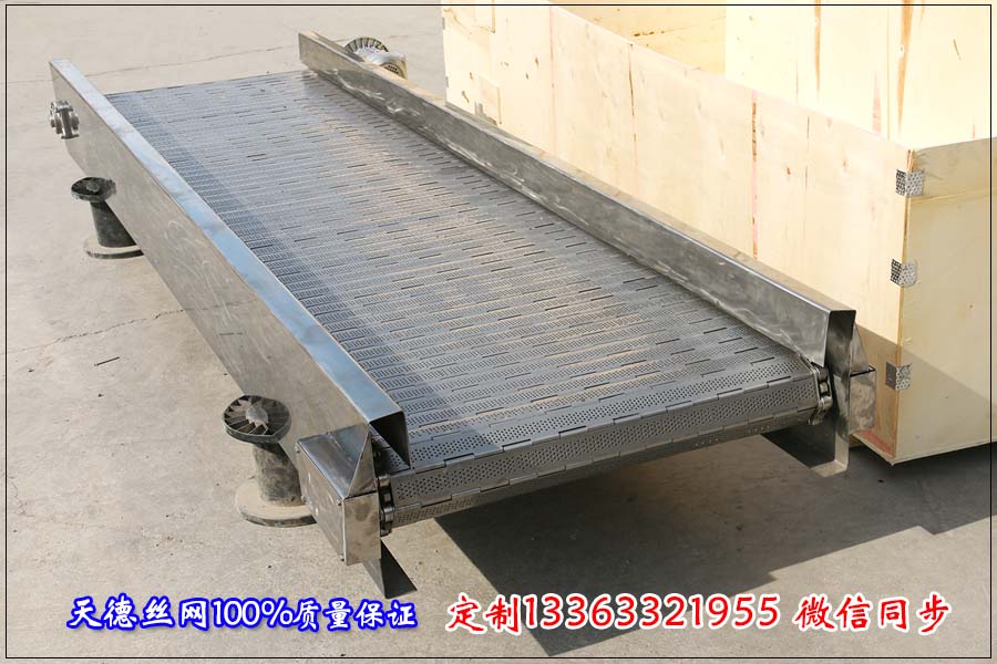 河北天德絲網制品有限公司生產鏈板輸送機、不銹鋼網帶、輸送機配件、鏈板輸送帶、鏈網輸送帶:13363321955 http://www.esmenhu.com/