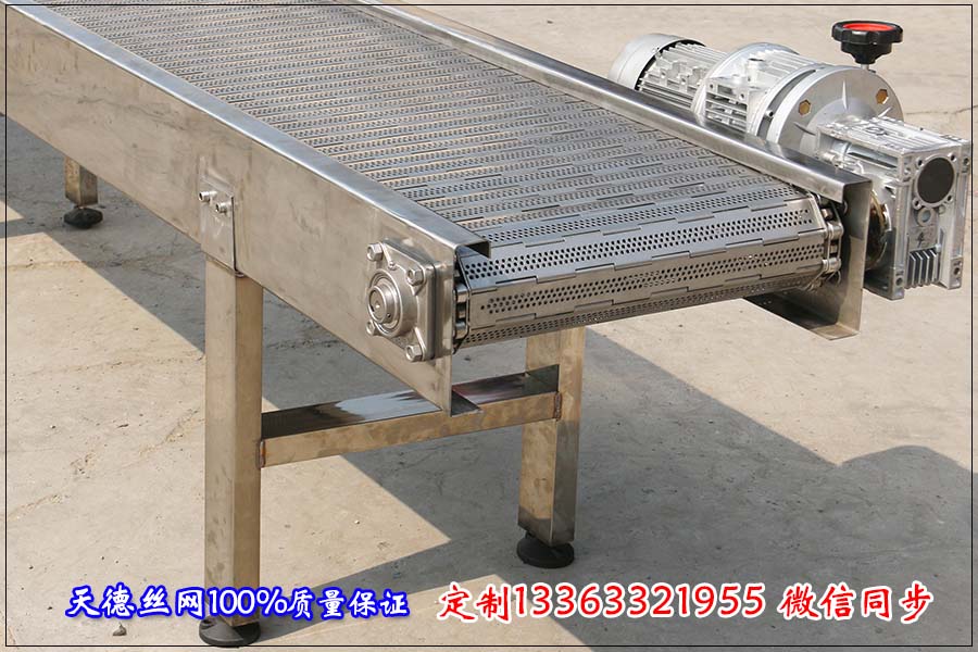 河北天德絲網制品有限公司生產鏈板輸送機、輸送鏈板、不銹鋼鏈板:13363321955 http://www.esmenhu.com/