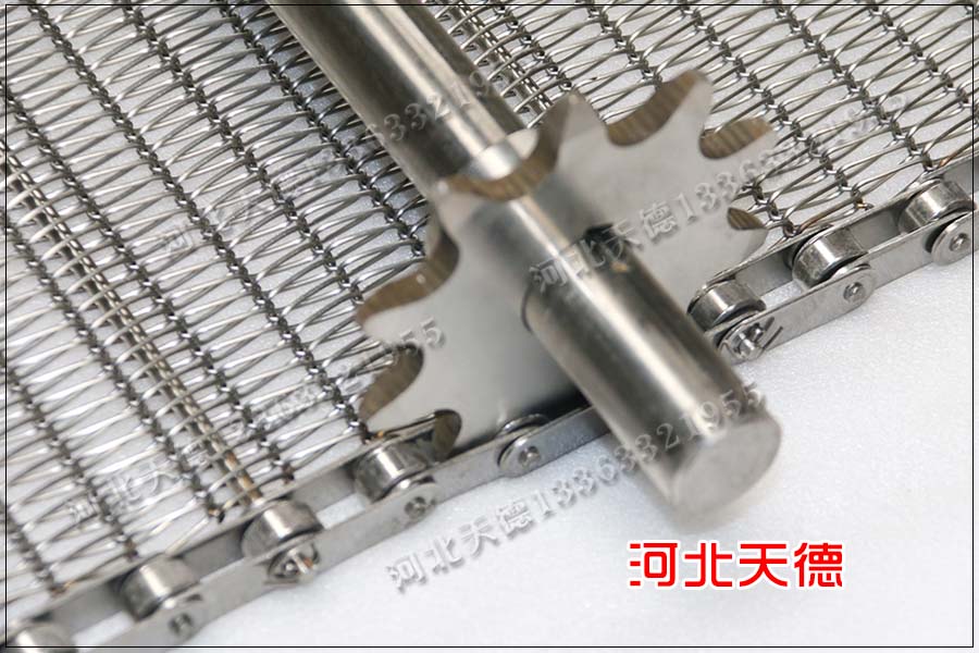 河北天德絲網制品有限公司生產鏈桿輸送帶、鏈條輸送帶、不銹鋼網帶、輸送網帶、輸送鏈輪、鏈條等等流水線輸送設備。