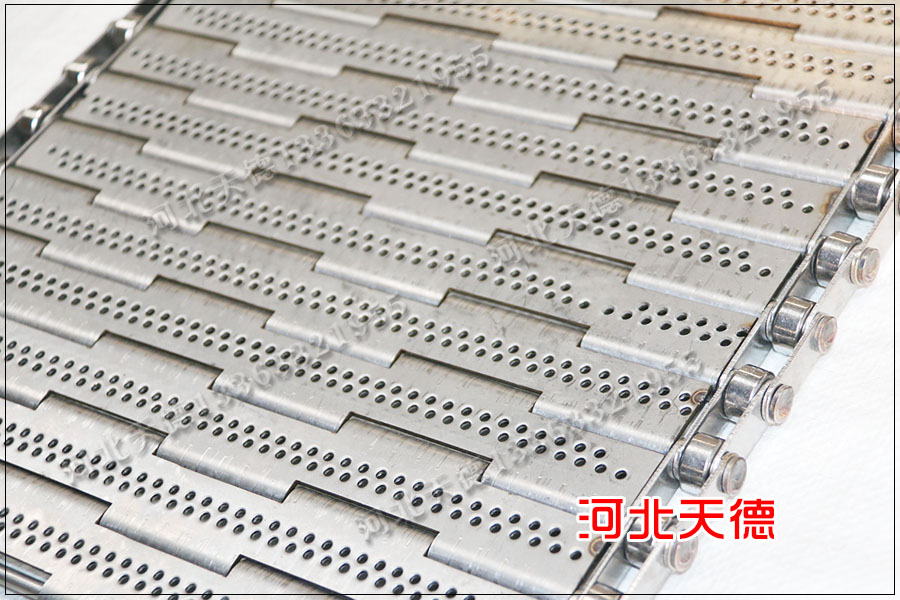 鏈板輸送網(wǎng)帶的總長度為22米,輸送距離為11米,客戶采用不銹鋼304材質(zhì)板材加工,表面打孔直徑5毫米。