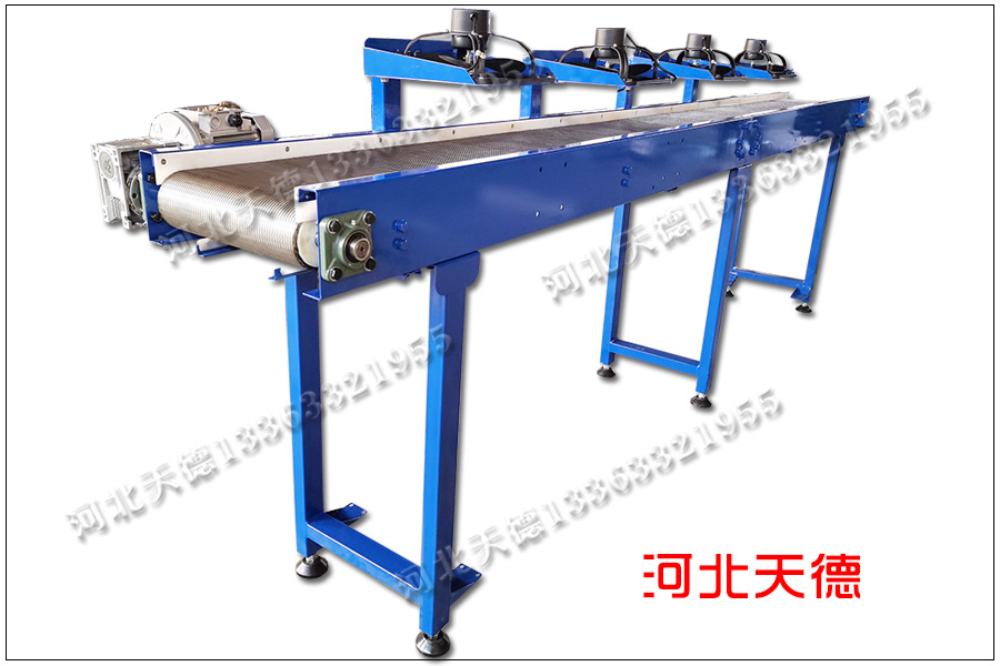 人字型網帶輸送機的長度為4米,輸送機的寬度為400毫米,高度為90公分。