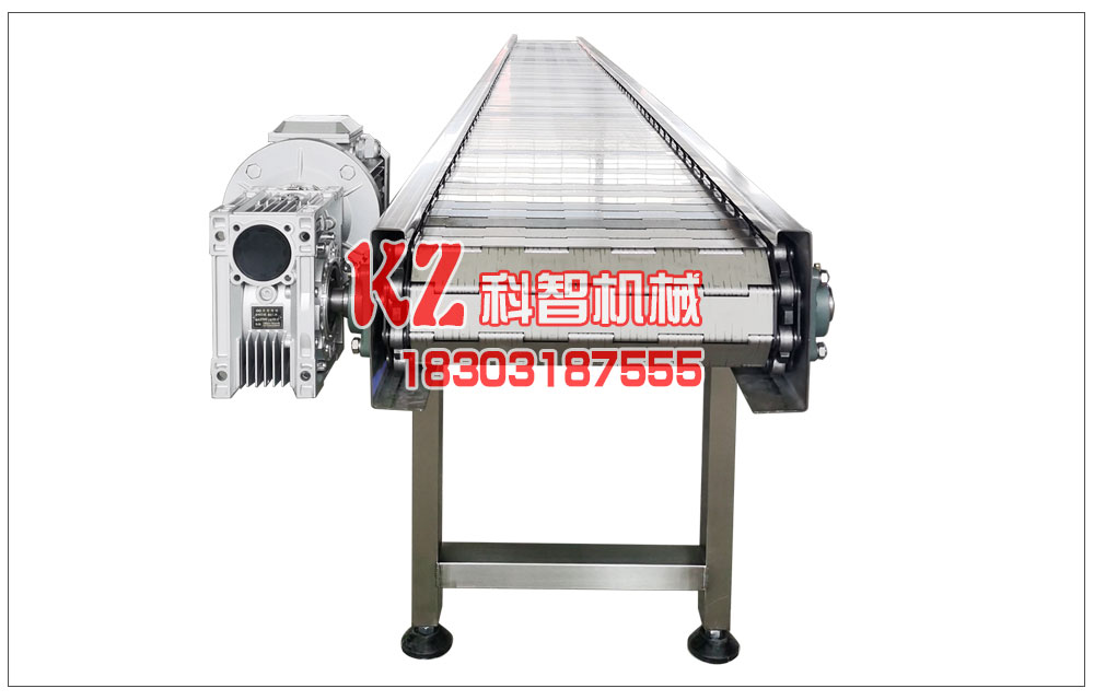 雞腸子輸送鏈板擋邊輸送機是由鏈板輸送帶、擋邊、橫隔板三部分組成;擋邊起防止雞腸子測滑撒落的作用;為便于繞過滾筒,擋邊設計成波紋狀或者直行的都可以的;橫隔板的作用是用來提升承托物料,為了實現大傾角輸送,采用T型TC...